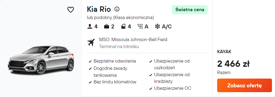Najlepszym sposobem na zwiedzanie Parku Narodowego Glacier jest wynajęcie samochodu. Polecam to zrobić już na lotnisku w Missouli.
