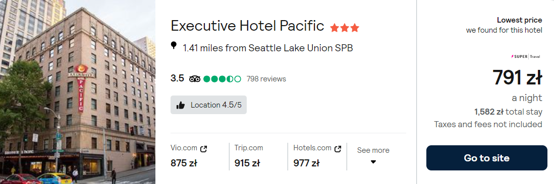W Seattle zatrzymaj się w 3* hotelu Executive Pacific. Do twojej dyspozycji zostanie oddany pokój z prywatną łazienką i dostępem do WiFi.
