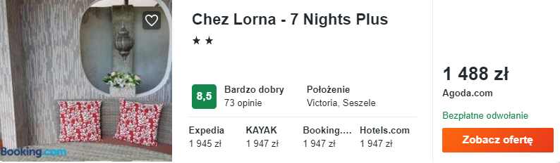 Wybrałem dla was noclegi w bardzo dobrze ocenianym pensjonacie Chez Lorna. Będzie to dobre miejsce na wypoczynek – miasto Victoria oraz pobliska plaża znajdują się w niedalekiej odległości od obiektu.