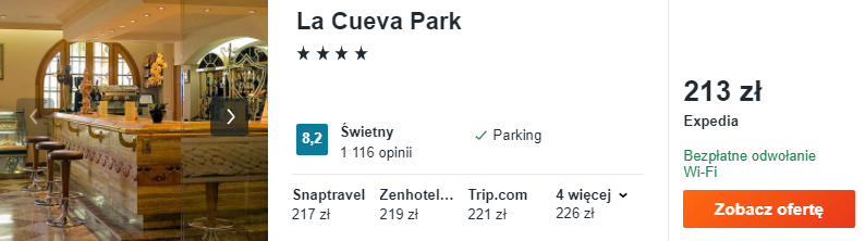 Dowiedzcie się więcej o tym hoteluJeżeli chcielibyście odwiedzić otoczony z trzech stron wodą Kadyks – postawcie na zakwaterowanie w eleganckim 4* hotelu La Cueva Park. Klasycznie urządzone wnętrza oraz świetna obsługa to rzeczy, które wyróżniają ten obiekt na tle innych propozycji.
