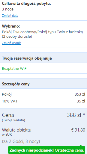Kalkulacja ceny przeprowadzona jest przy założeniu, że w podróży biorą udział 2 osoby.