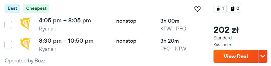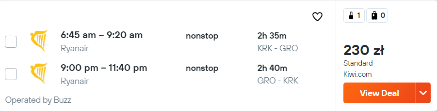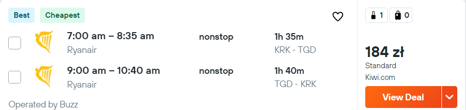 Na wycieczkę polecisz na pokładzie samolotów linii lotniczej Ryanair z Katowic i Krakowa. Możesz udać się do Podgoricy, Pafos, Katanii, Marsylii, Cagliari, Wenecji i Girony.