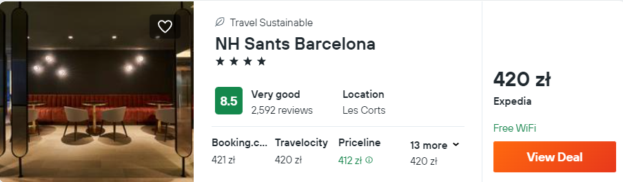 W Barcelonie proponuję zakwaterowanie w 4* hotelu NH Sants. Na miejscu skorzystasz z nowocześnie urządzonego pokoju z prywatną łazienką i darmowym WiFi.