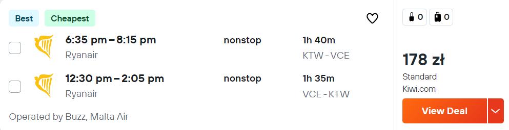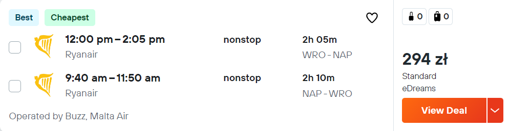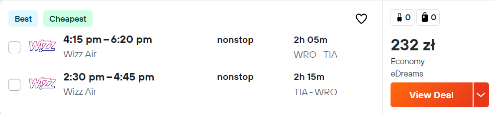 Na wycieczkę polecisz na pokładzie samolotów linii lotniczej Ryanair lub Wizz Air z Krakowa, Wrocławia, Poznania i Katowic. Możesz udać się do Wenecji, Bari, Neapolu, Marsylii, Podgoricy, Tirany i Zadaru.