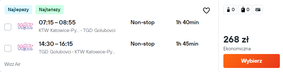 Wszystkie poniższe loty to bezpośrednie podróże na pokładzie samolotów linii lotniczej Ryanair i Wizz Air z 4 miast w Polsce. Możesz wybrać się do: Czarnogóry, Włoch, Hiszpanii, Chorwacji i Francji. Najtańsze bilety dostępne są od 199 PLN/osobę.