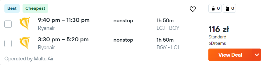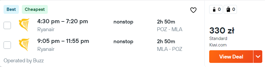 Na wycieczkę polecisz na pokładzie samolotów linii lotniczej Ryanair lub Wizz Air z Warszawy (Modlin), Krakowa, Wrocławia, Poznania i Łodzi. Możesz udać się do Pafos, Katanii, Marsylii, Bergamo, Wenecji, Bari, Neapolu i na Maltę.