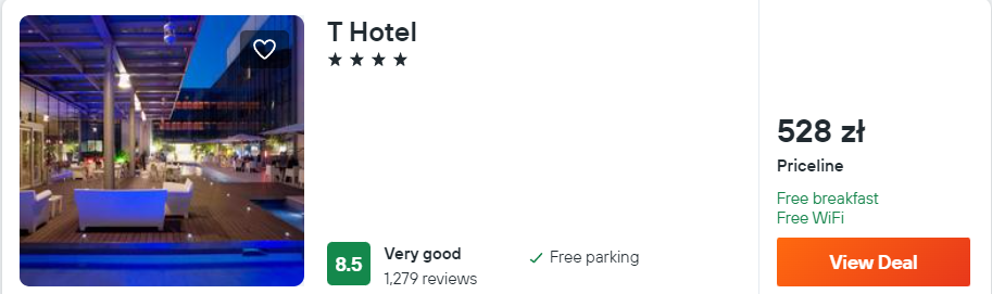Na Sardynii polecam noclegi w 4* hotelu T, który zlokalizowany został w Cagliari. W cenę pobytu wliczono śniadania.