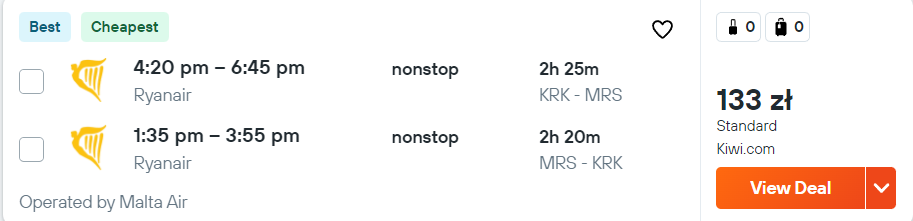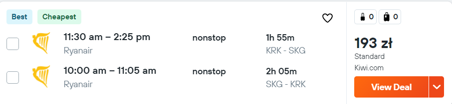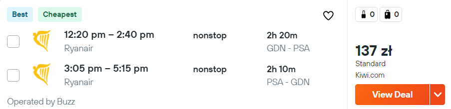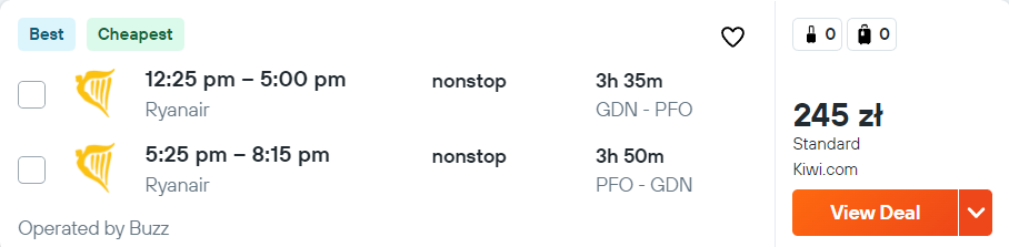 Na wycieczkę polecisz na pokładzie samolotów linii lotniczej Ryanair z Katowic, Gdańska i Krakowa. Możesz udać się do Podgoricy, Saloników, Bergamo, Pafos, Katanii, Marsylii, Cagliari i Pizy.