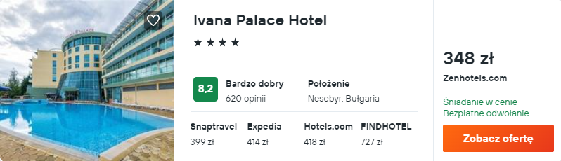 Będziecie zakwaterowani w bardzo dobrze ocenianym 4* hotelu Ivana Palace. Na miejscu do dyspozycji gości oddano odkryty basen, klimatyzowane pokoje oraz codzienne śniadania podawane w restauracji.