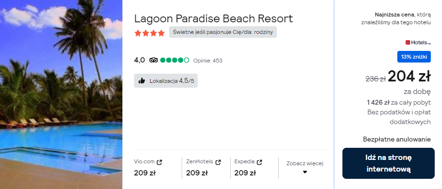 Zatrzymaj się w 4* hotelu Lagoon Paradise Beach Resort. Obiekt znajduje się niedaleko wybrzeża i cieszy się pozytywnymi opiniami dotychczasowych gości. Będzie to bardzo dobra baza wypadowa w trakcie wycieczki.