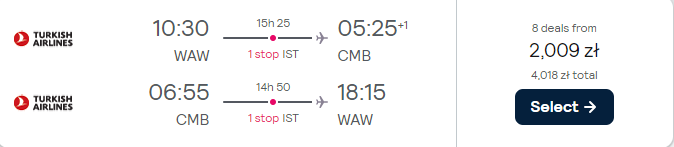 Na wyspę Cejlon udasz się dopiero w przyszłym roku, w terminie 9(10) – 16 kwietnia. Czeka cię podróż z Warszawy do Kolombo, realizowana na pokładzie samolotów linii lotniczej Turkish Airlines. Po drodze zaplanowano gwarantowane przez przewoźnika przesiadki w Stambule, a w cenę wliczono podróż z bagażem rejestrowanym (nadawanym do luku).