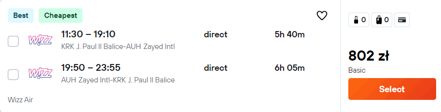 Podróż odbędziesz odpowiednio liniami Wizz Air oraz Etihad Airways. W cenie zabrać możesz bagaż podręczny. Do zakupu biletów nie są potrzebne żadne kluby zniżkowe, są one dostępne dla wszystkich chętnych.