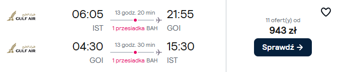 Na wycieczkę wybierzesz się na przełomie listopada i grudnia. Najpierw polecisz do Stambułu z Berlina, następnie z Gulf Air udasz się do Goa (z przesiadkami w Bahrajnie). W cenie możesz zabrać bagaż podręczny.