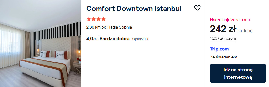 Możesz także postawić na pobyt w 4* hotelu Comfort Downtown Istanbul, który znajduje się w centrum miasta. Codziennie serwuje pyszne śniadania w formie bufetu.