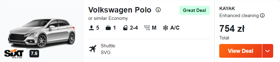 Dowiedzcie się więcej o tym hoteluSamochód 754 PLN/3 dni