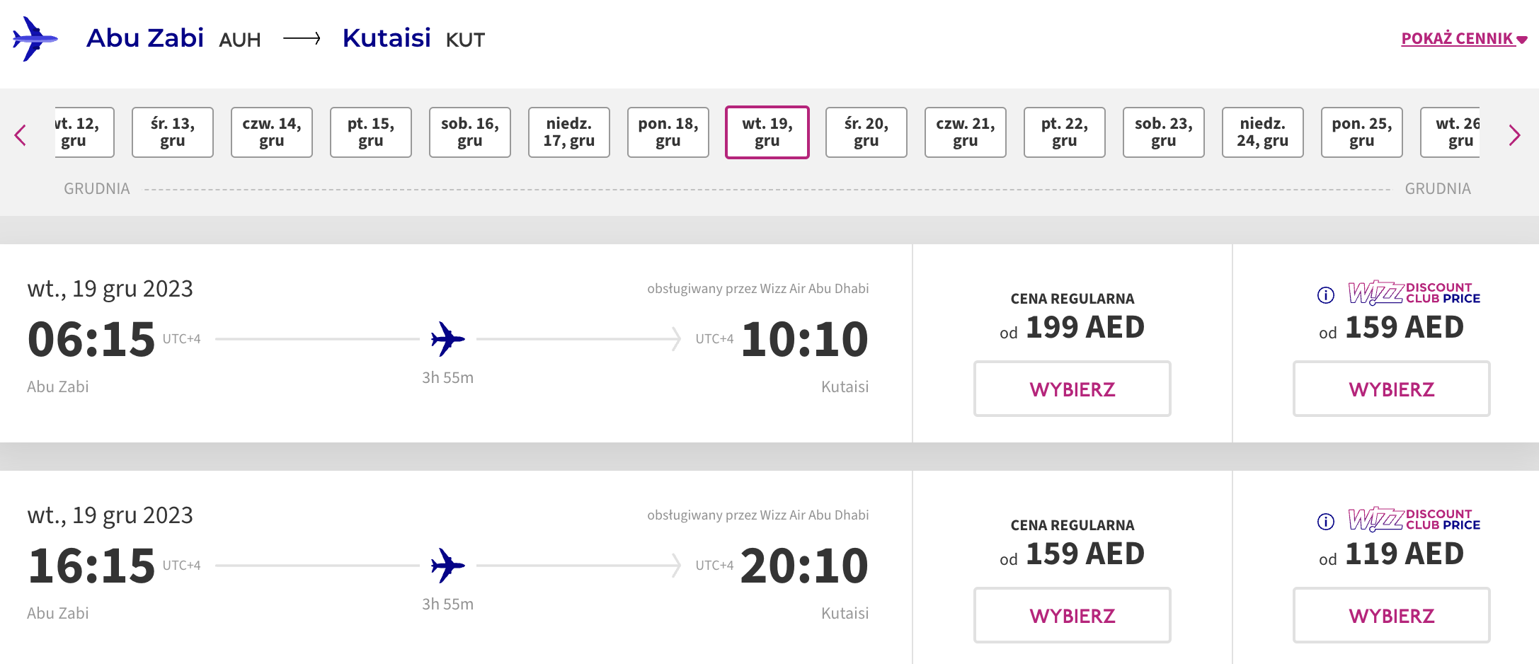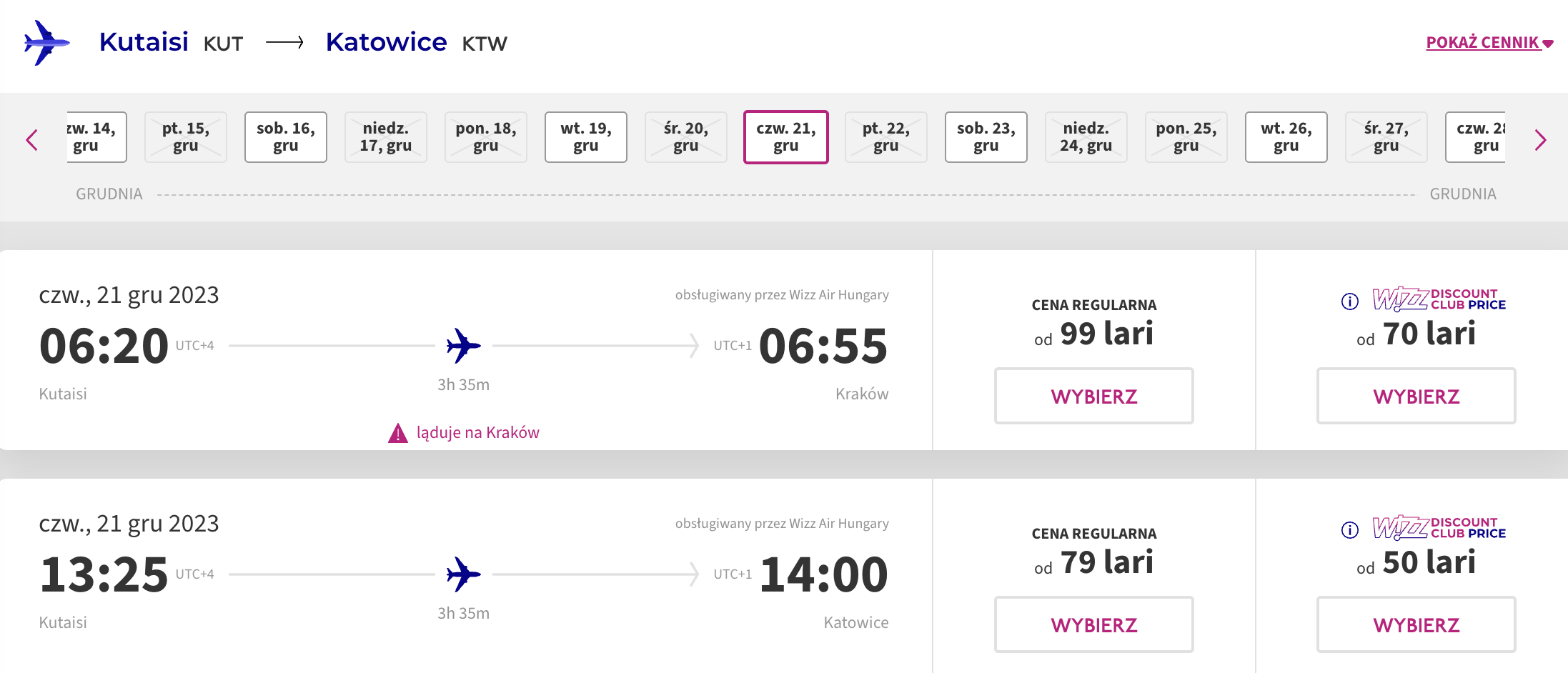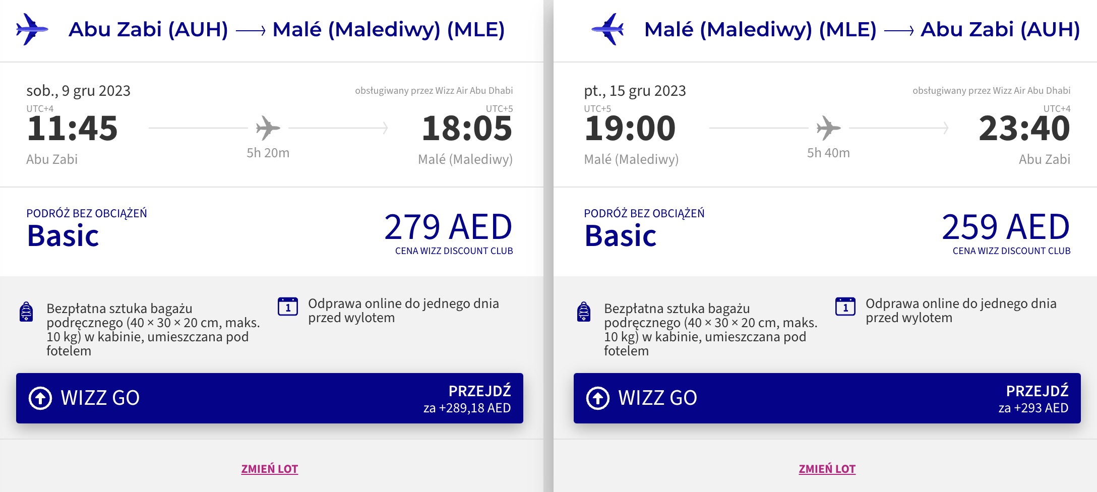 W ten niezwykły wyjazd udasz się w grudniu z lotniska w Katowicach. By uzyskać tytułową cenę, konieczne będzie dokonanie 5 oddzielnych rezerwacji: na loty z Katowic do Larnaki, z Larnaki do Abu Zabi, z Abu Zabi na Malediwy, z Abu Zabi do Kutaisi oraz z Gruzji do Polski. Wszystkie loty odbędą się na pokładzie samolotów linii lotniczej Wizz Air.