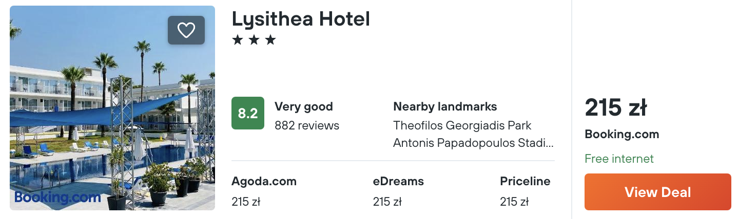 W Larnace wybierz 3* hotel Lysithea. Na miejscu znajdziesz basen i taras słoneczny.