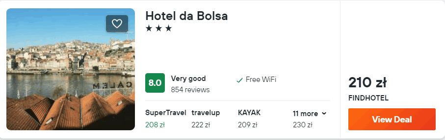 W Porto zatrzymasz się w 3* hotelu da Bolsa. Wszystkie pokoje zostały wyposażone w ogrzewanie oraz telewizor LCD. W każdym jest łazienka z prysznicem i suszarką do włosów. Na terenie całego obiektu będziesz mieć dostęp do sieci WiFi.
