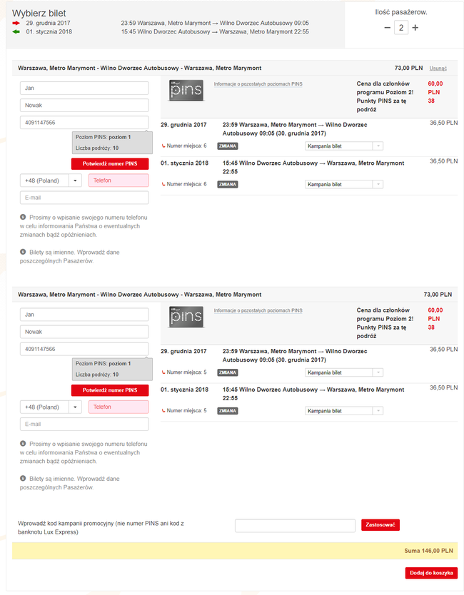 Przy zakupie biletów na przejazd, aby skorzystać z 15% zniżki należy być członkiem programu lojalnościowego PINS. Zapisanie się jest bezpłatne i od razu pozwala na korzystanie z rabatu. Jak to zrobić opisujemy tutaj. Każdy z pasażerów musi być zapisany do programu lojalnościowego. Bilety kupujecie na stronie Lux Express.