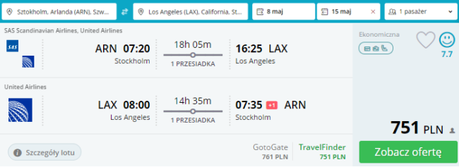 Zarezerwuj loty ze Sztokholmu do Los Angeles: