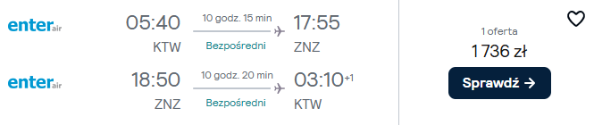 Do Afryki udasz się w terminie 22 stycznia – 5 lutego. Na Zanzibar polecisz bezpośrednio (z przystankiem na tankowanie w Egipcie) czarterową linią lotniczą Enter Air z Katowic. W cenie możesz zabrać ze sobą bagaż podręczny i rejestrowany (nadawany do luku).