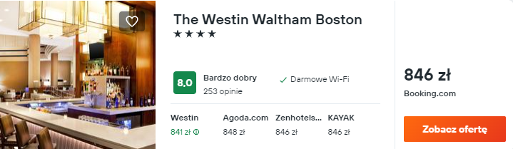 Wybierasz się do stanu Massachusetts? Zatrzymaj się tam w bardzo dobrze ocenianym 4* The Westin Waltham Boston.