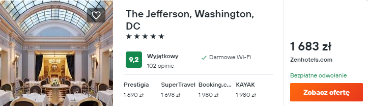 A może wycieczka do Waszyngtonu? W stolicy USA zaszalej i postaw na zakwaterowanie godne głowy państwa – w luksusowym 5* The Jefferson, Washington, DC.