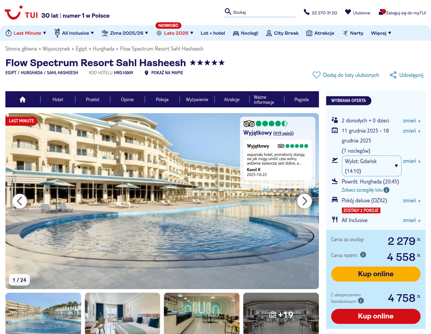 Hurghada od 2533.5 PLN na 7 dni (lotnisko wylotu: Gdańsk)