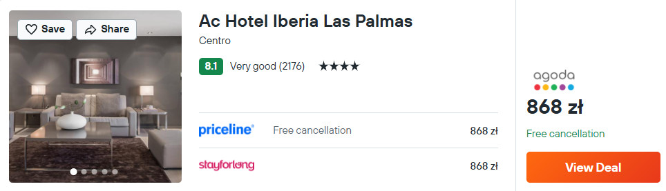 Natomiast na Gran Canarii rozważ pobyt w 4* hotelu Ac Hotel Iberia Las Palmas. Znajduje się na północny wyspy, w miejscowości Las Palmas. W cenie zapewniony będziesz miał dostęp do odkrytego basenu, centrum fitenss oraz sieci WiFi.