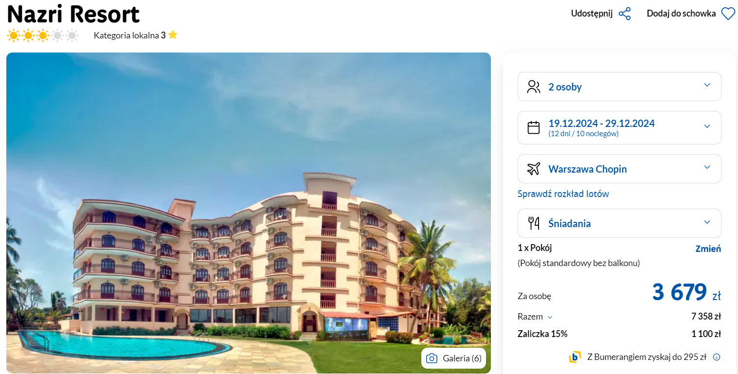 W cenie otrzymasz przeloty (z bagażem rejestrowanym), transfery na trasie lotnisko – hotel – lotnisko, podstawowe ubezpieczenie i codzienne śniadania.
