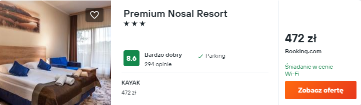 Na koniec propozycja w Zakopanem. Premium Nosal Resort to komfortowy obiekt wypoczynkowy, który spełni wymagania nawet najbardziej wymagających podróżnych. Świetna lokalizacja, wliczone śniadania oraz bardzo dobre opinie dotychczasowych gości – oto najważniejsze atuty hotelu.