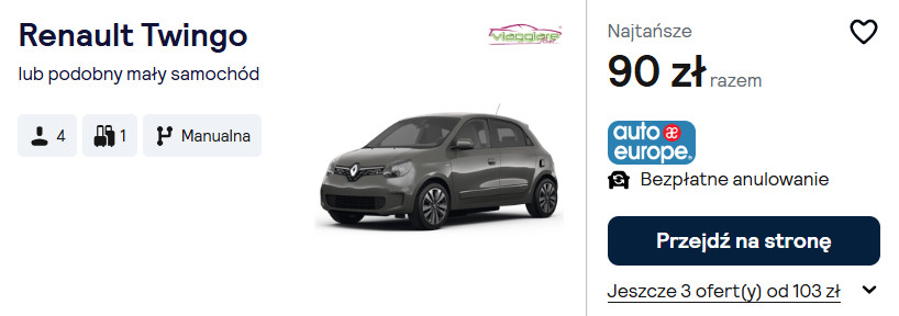 Samochód od 90 PLN/pobyt