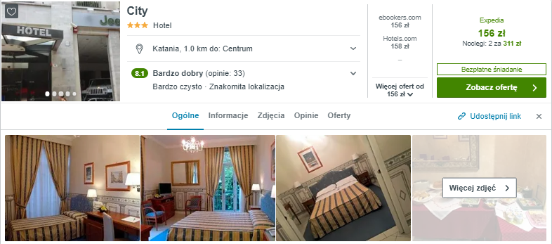 W Katanii wybrałem dla was zakwaterowanie w 3* hotelu City.