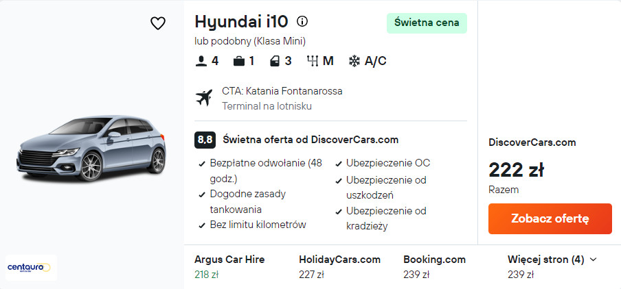 Nawet na tych kilka dni warto wypożyczyć samochód. Mając do swojej dyspozycji auto, łatowi i wygodnie dojedziesz do Taorminy czy Syrakuzy.