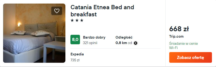 W Katanii zatrzymasz się w obiekcie Catania Etnea Bed and breakfast, który od Placu Duomo oddalony jest o 700 metrów. Z lotniska w okolice miejsca noclegowego dojedziesz komunikacją publiczną lub wypożyczonym samochodem – szczegóły poniżej.