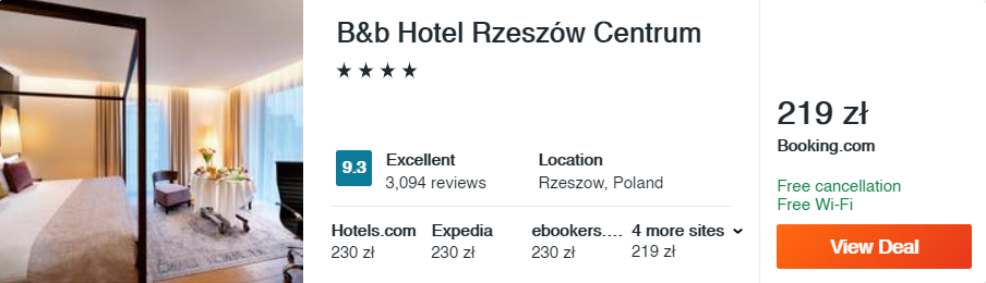 Sylwester na Podkarpaciu? Czemu nie! Na swój pobyt wybierzcie 4* hotel B&b Rzeszów Centrum, który jak sama nazwa wskazuje – położony jest w samym sercu miasta. Dla gości udostępniono m.in. pokoje z prywatnymi łazienkami i bezpłatnym zestawem kosmetyków oraz Wi-Fi.