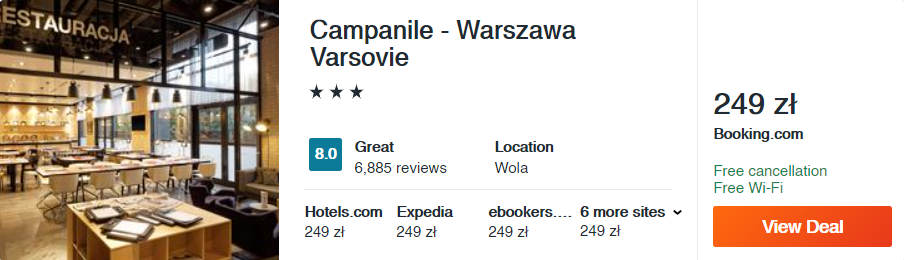 Wszystkie wybrane przeze mnie hotele dostępne są w atrakcyjnych cenach i obejmują sylwestrowe terminy. Co więcej, cieszą się bardzo dobrymi opiniami dotychczasowych gości. To od was tylko zależy, czy nowy rok przywitacie w Warszawie, we Wrocławiu, w Krakowie, a może w Rzeszowie, w Częstochowie lub w Wałbrzychu?