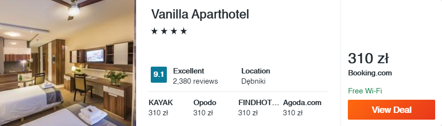 Na koniec powróćmy do klasyków – przywitajcie nowy rok w mieście króli. Oczywiście mowa o wspaniałym Krakowie, gdzie rekomenduję wam nocleg w 4* Vanilla Aparthotel. Komfortowe pokoje, bezpłatne Wi-Fi i oryginalna restauracja – to tylko kilka powodów, dla których warto wybrać ten obiekt.