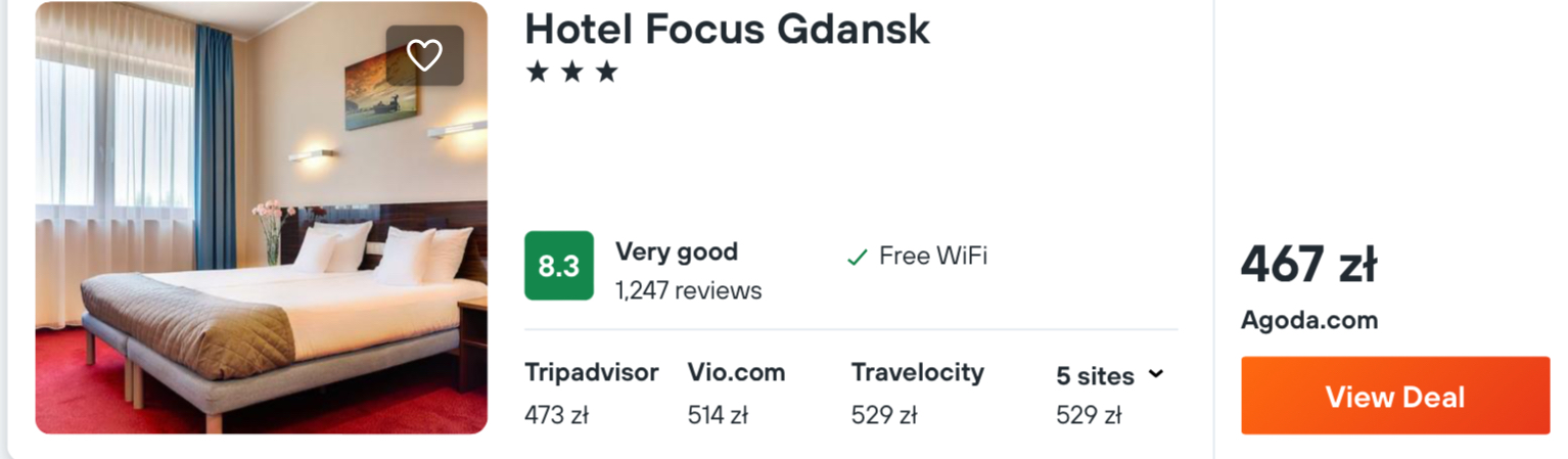 Wizyta nad morzem? Udaj się do Gdańska, gdzie zatrzymasz się w 3* hotelu Focus. Dotychczasowi goście bardzo pozytywnie oceniają pobyt w tym miejscu. Każdy pokój posiada prywatną łazienkę, TV i dostęp do WiFi.