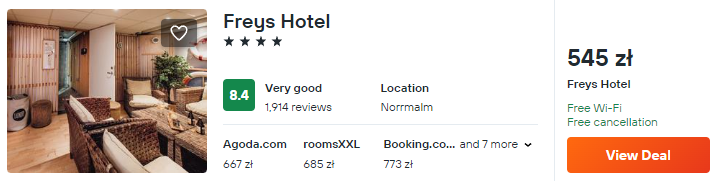 Zatrzymaj się w 4* hotelu Freys. Obiekt zlokalizowany jest w centrum miasta i będzie świetną bazą wypadową do zwiedzania stolicy Szwecji.