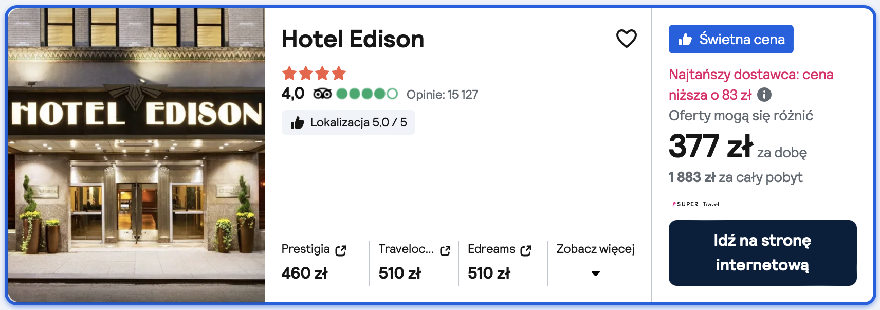 W Nowym Jorku postaw na 4* hotel Edison, który znajduje się na Manhattanie.