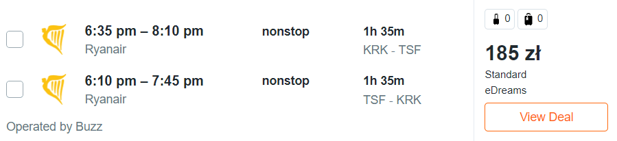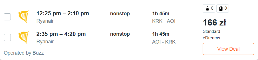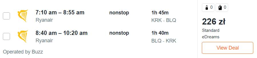 Do Ankony, Bari, Bergamo, Bolonii, Katanii, Neapolu, Pizy, Turynu oraz Wenecji udacie się z Gdańska, Katowic, Krakowa, Poznania, warszawskiego lotniska w Modlinie oraz Wrocławia. Za podróż (w dwie strony) na pokładach samolotów linii Ryanair z wliczonym małym bagażem podręcznym zapłacicie od 137 PLN do 249 PLN.