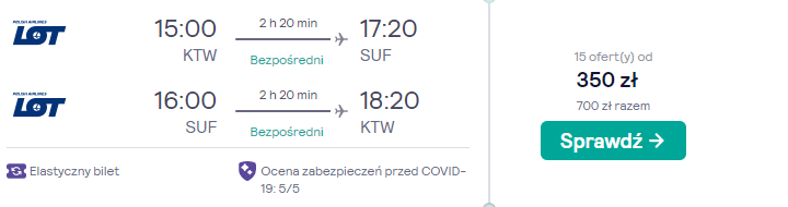 Tylko dzisiaj: skorzystajcie z atrakcyjnych, obniżonych cen oferowanych przez naszego narodowego przewoźnika i zarezerwujcie dla siebie wakacyjne bilety w świetnych cenach. Do wyboru macie wyloty z Warszawy oraz Katowic, a na każdej z tras polecicie korzystając z wygodnego, bezpośredniego połączenia realizowanego na pokładzie samolotu PLL LOT.