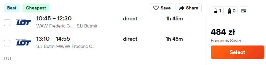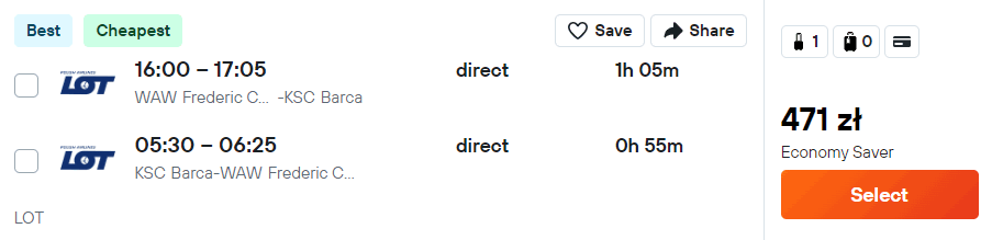 Możliwe są także loty z portów regionalnych (Gdańsk, Katowice, Kraków, Poznań, Rzeszów, Wrocław). Pamiętaj, że odbędą się one z przesiadką w Warszawie, a cena może się różnić od tej dotyczącej biletów ze stolicy.