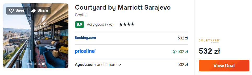 Natomiast w Sarajewie rozważ pobyt w 4* hotelu Courtyard by Marriott Sarajevo, który położony jest nad rzeką Miljacka. Na dachu obiektu mieści się restauracja z tarasem widokowym.