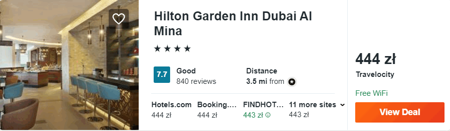 Natomiast w Dubaju proponuję wam noclegi w 4* hotelu Hilton Garden Inn Dubai Al Mina, z odkrytym basenem na dachu. Wszystkie pokoje są z klimatyzowane i wyposażone w telewizor LCD, minibar oraz zestaw do parzenia kawy lub herbaty.