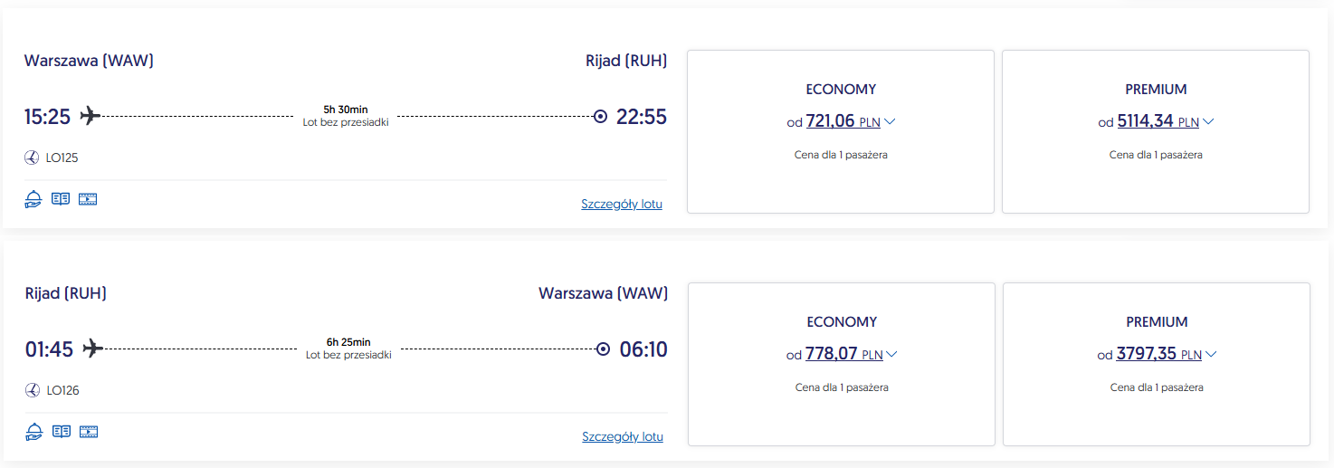 Szalona Środa w PLL LOT: loty europejskie od 429 PLN, Arabia Saudyjska od 1499 PLN