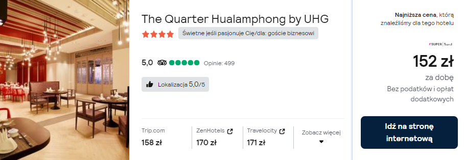 W Bankgkou rekomenduję ci noclegi w Chinatown, tuż obok wielu kawiarni, modnych barów oraz oczywiście słynnego nocnego rynku. Wybierz bardzo dobrze oceniany 4* hotel The Quarter Hua Lamphong by UHG.