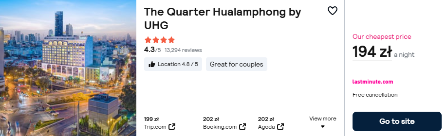 W Bangkoku zatrzymaj się w bardzo dobrze ocenianym 4* hotelu The Quarter Hualamphong by UHG. Lokalizacja u bram China Town oznacza doskonałą bazę wypadową w trakcie wycieczki.