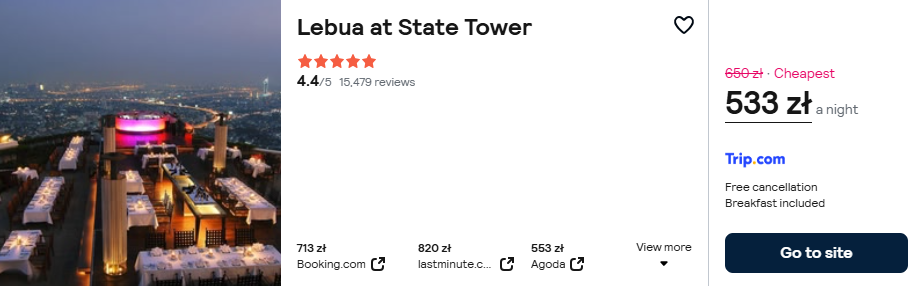 Masz ochotę mocniej zaszaleć? Wybierz kultowy 5* hotel Lebua at State Tower z fenomentalną panoramą miasta.